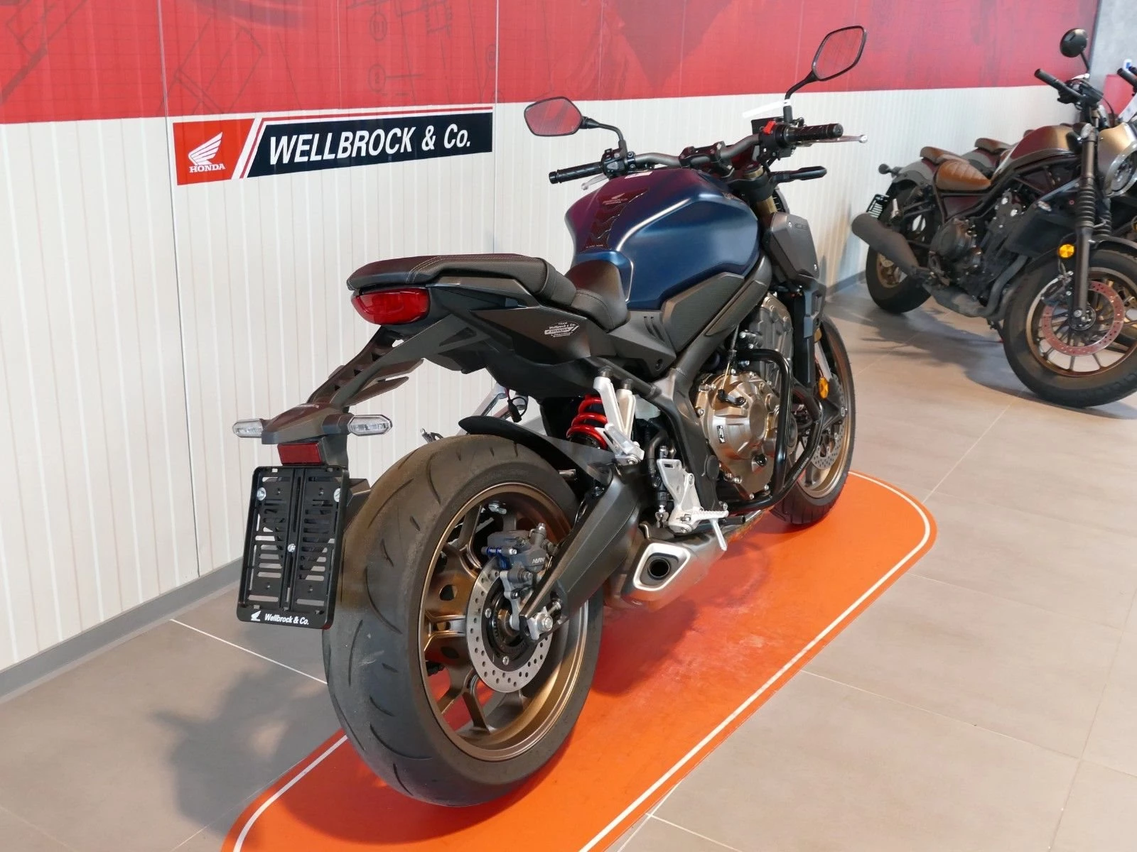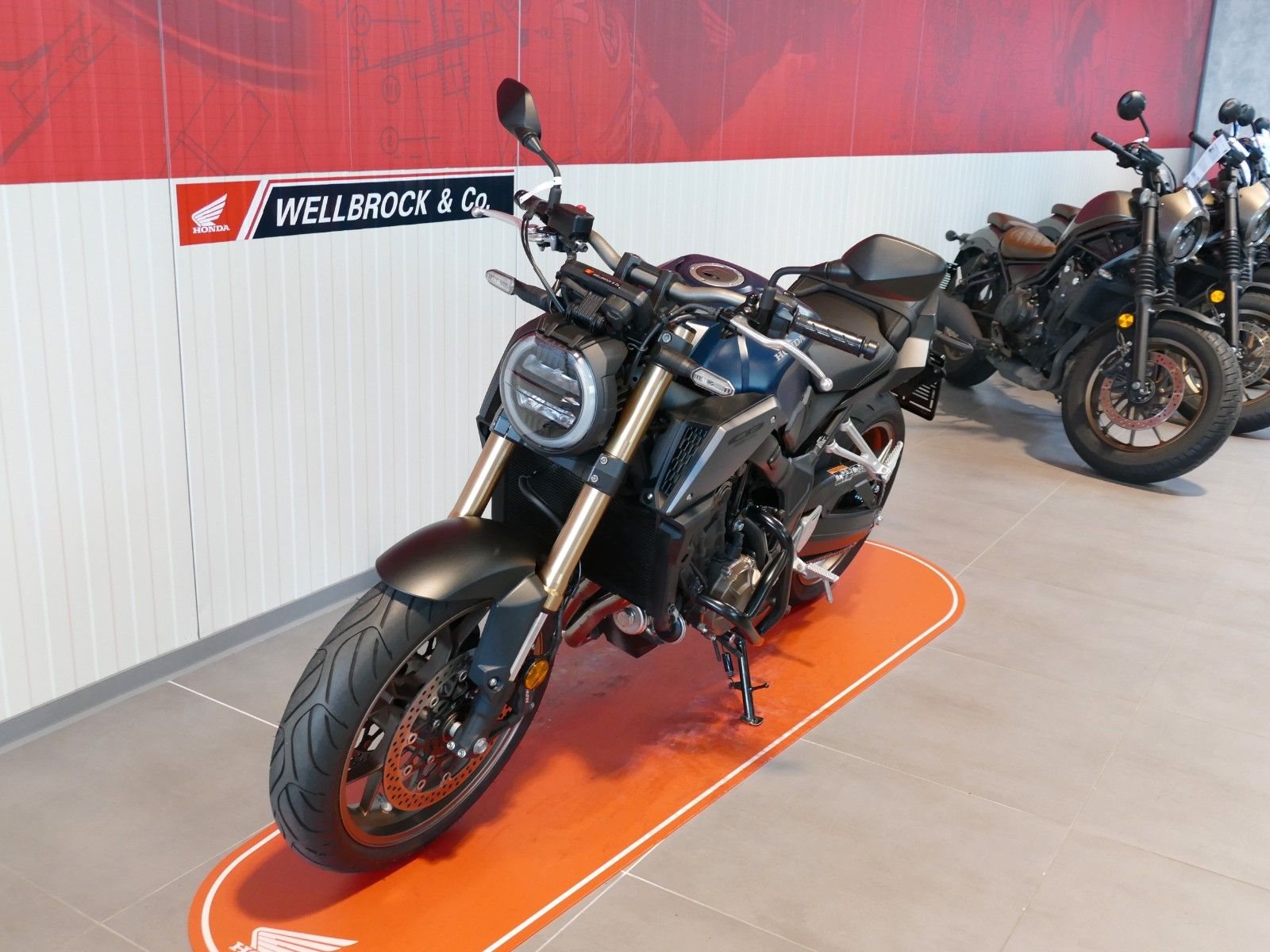Honda's CB650R proves brilliantly that four-cylinder naked bikes with little displacement are also a real source of joy on the country road. The engine tuning provides enough pressure from the hairpin bend and rewards with a wonderful four-cylinder shriek after a short wait. The chassis components offer a solid balance between everyday life and sportiness.