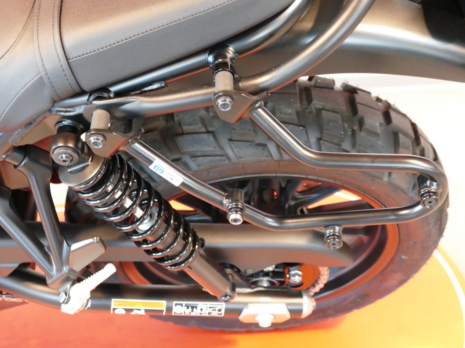 Ausgestattet ist die Maschine mit einer hohen Sitzbank, Scheinwerfermaske, Halterung für Satteltasche, Raximo Alu Lenker, Sozius-Haltegriff, Lenkerendenspiegel, 12V Steckdose und eine lackierte Auspuffblende in Schwarz welche eine kleine Abplatzung aufweist. Finanzierung möglich. Unfallfrei.